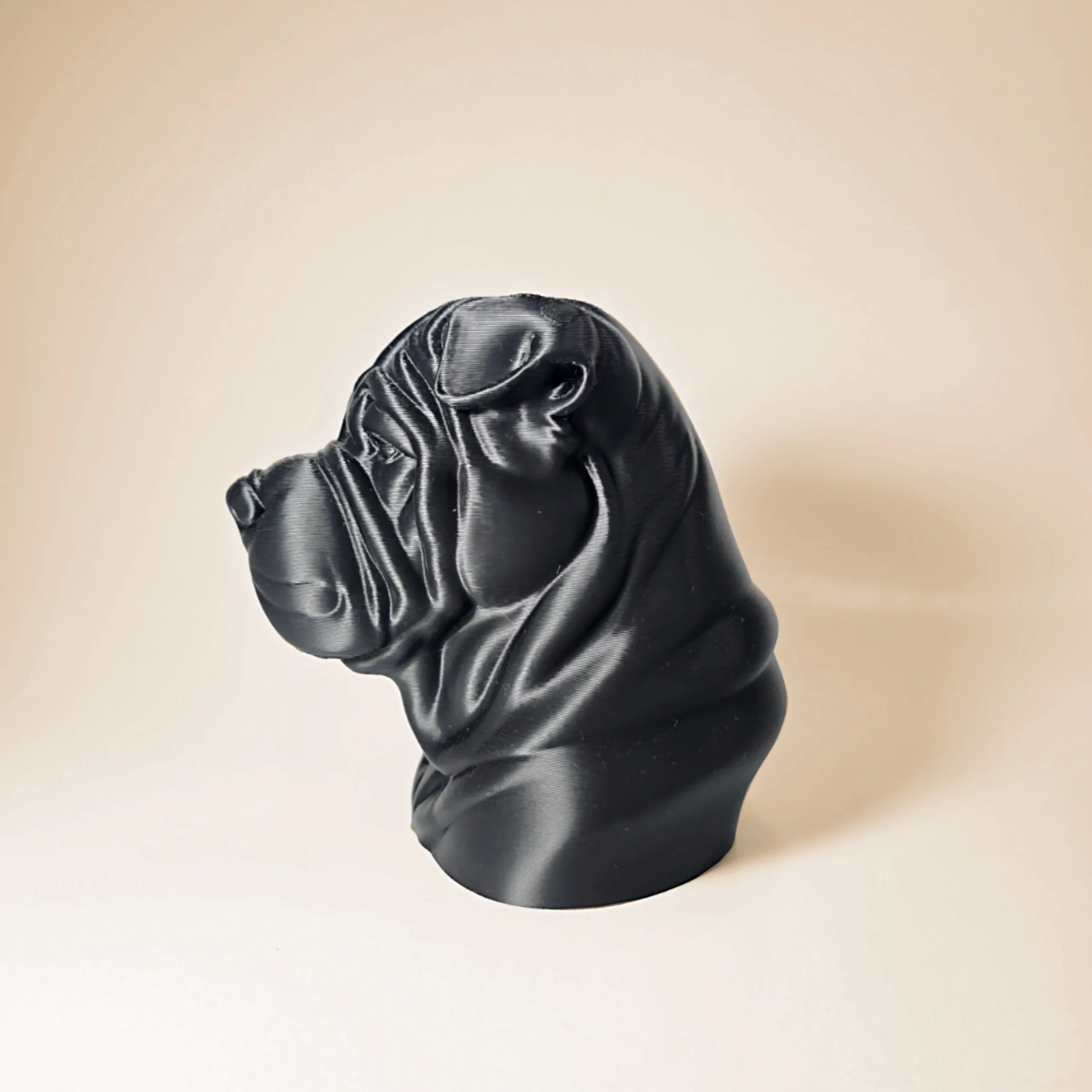 Este busto personalizado de mascota está creado mediante impresión 3D de alta precisión, capturando los rasgos característicos del animal para crear una pieza decorativa única.
